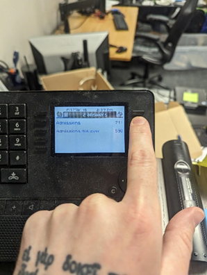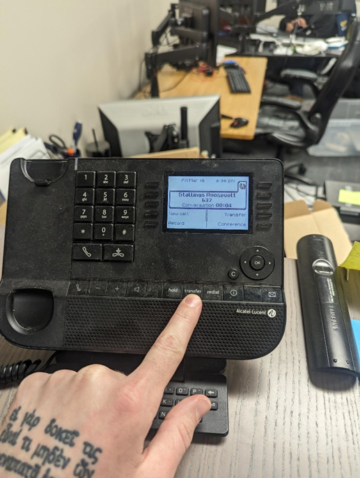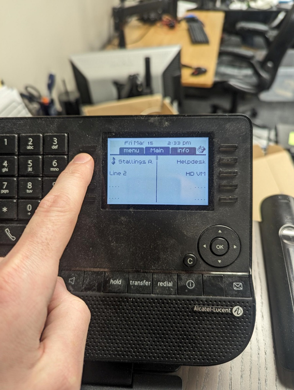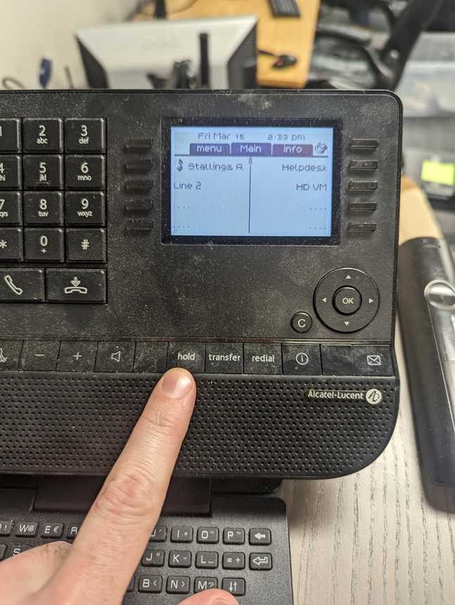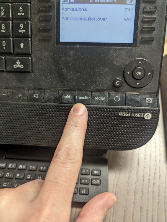 - Cuando esté listo para continuar su llamada, seleccione el botón junto al nombre en la pantalla y luego levante el auricular.