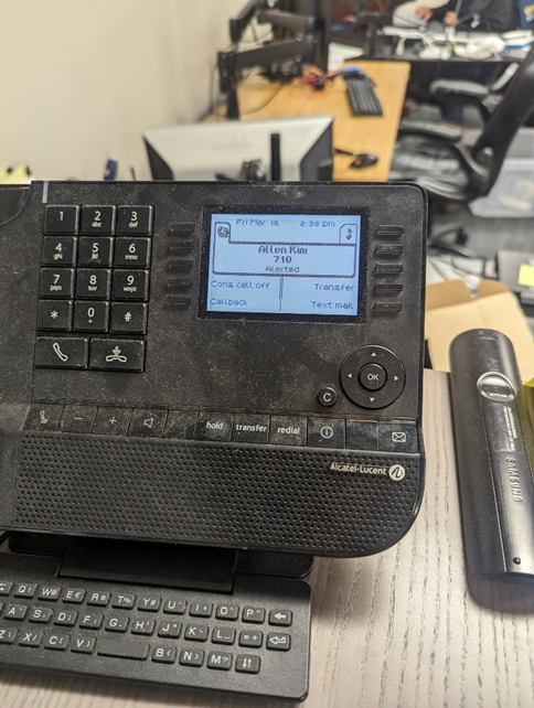 - Si conoce la extensión de la persona a la que está llamando, puede marcar su extensión de tres dígitos y el teléfono de escritorio comenzará a llamarla automáticamente. Levante el auricular para desconectar el teléfono del altavoz.